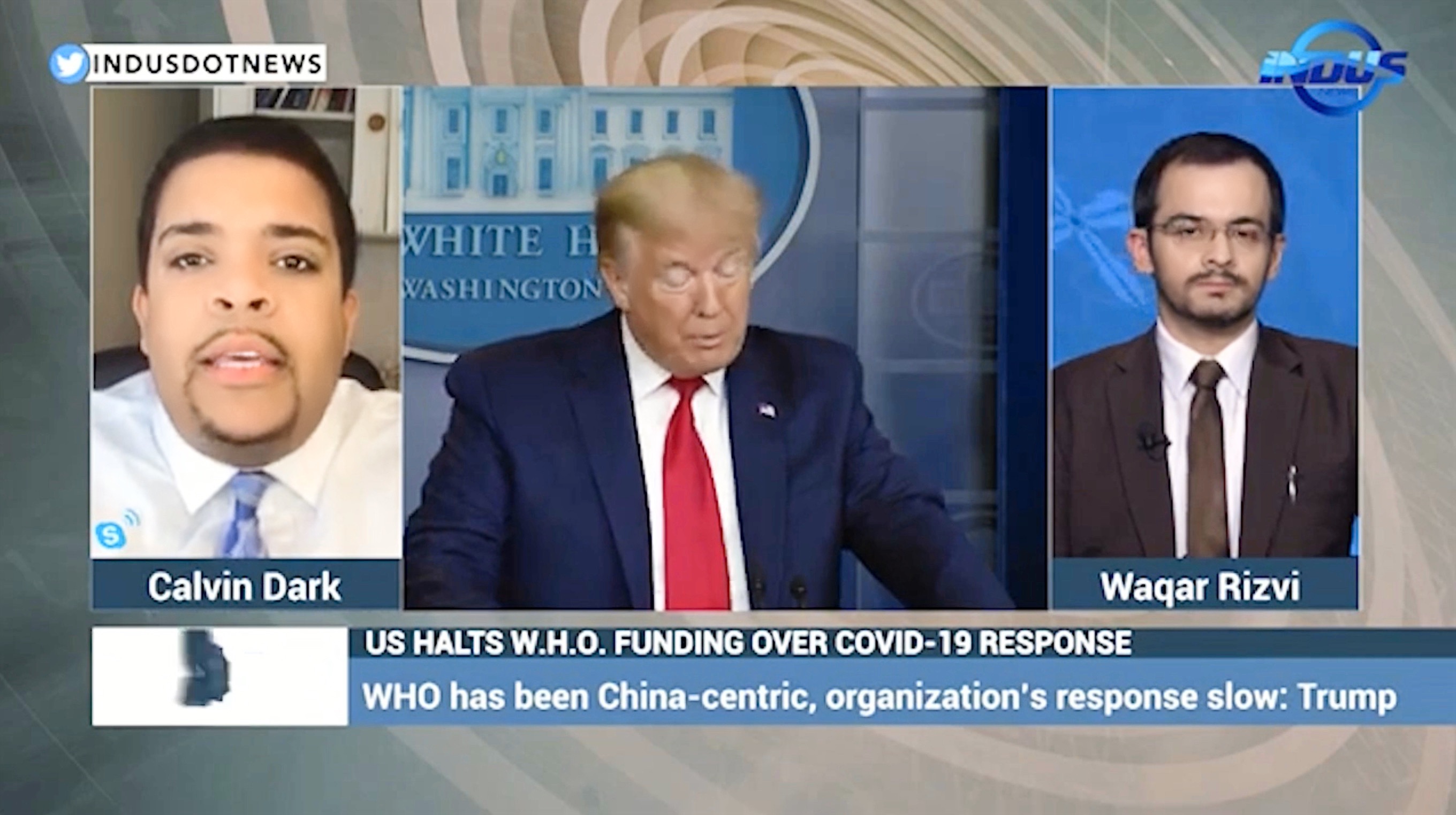 #Trump halts #US #WHO funding over #COVID19…but WHY? RC Communications Principal & Co-founder Calvin Dark joined Indus News’ Scope with host Waqar Rizvi & Global Health Expert Mary Andes to analyze & discuss.